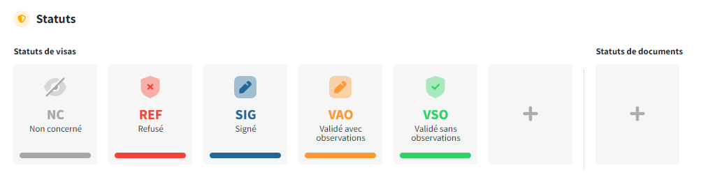 Les statuts de document sont des statuts complémentaires aux statuts de visas qui pourront être attribués par Sofya Docs aux documents.