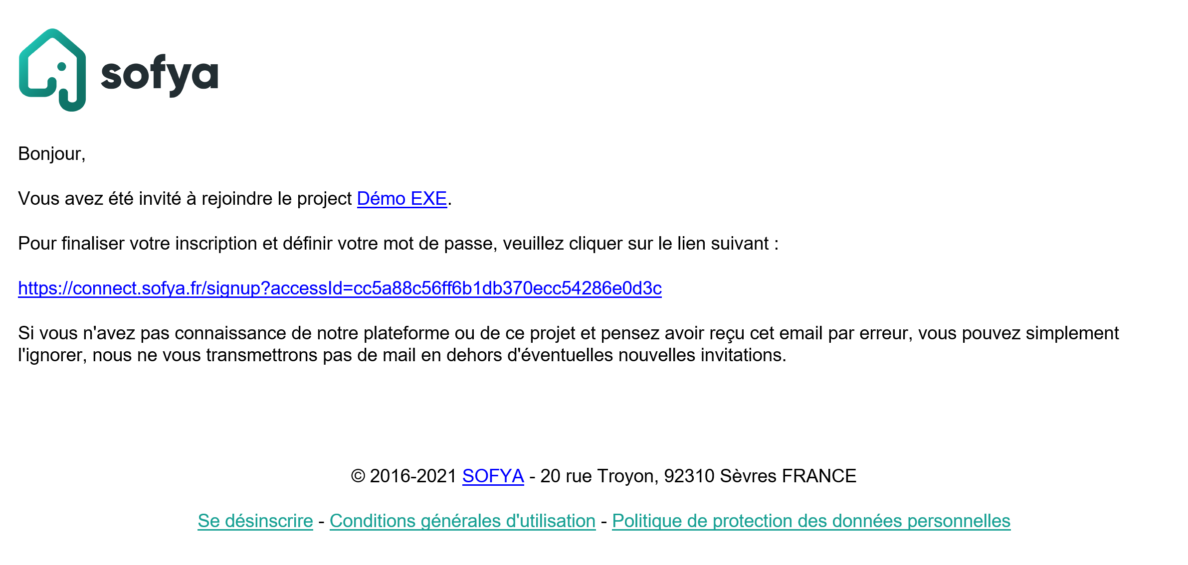 Votre premier projet avec Sofya est sur le point de démarrer. Pour accéder à l'espace dédié au projet sur Sofya, vous devez d'abord créer votre compte. Lorsque vous avez été ajouté au projet, un mail automatique contenant un lien unique vous permettant de créer votre compte vous a été envoyé.