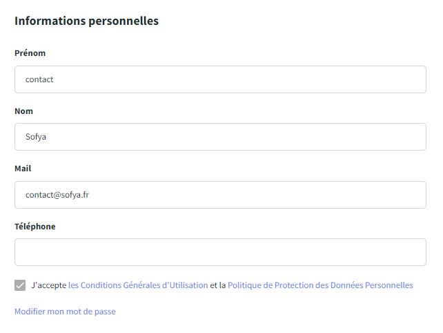| Conditions légales | Les conditions générales d'utilisation et la politique de protection des données personnelles que vous avez accepté lors de la création de votre compte |